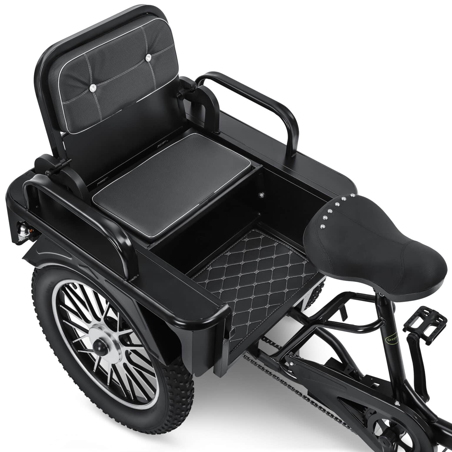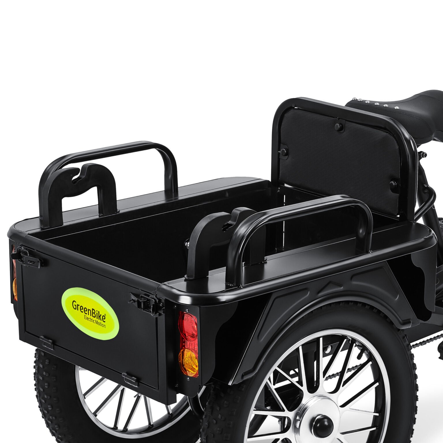 אופניים תלת אופן חשמלי עם מושב נוסע אחורי מרופד ורחב, אשר ניתן להפוך גם לארגז. אופני תלת אופן חזקים ויציבים במיוחד! יתרון סוללה 48 וולט, 15 אמפר, מנוע 250 וואט. יתרון מהירות מרבית 25 קמ”ש. יתרון 3 גלגלי מגנזיום 20 אינץ’, צמיגי פט רוחב 4 אינץ’. יתרון בלמי דיסק איכותיים . יתרון מושב נהג רחב ומתקפל, מושב נוסע נוסף עם משענת. יתרון מסך דיגיטלי עם נתוני מהירות, סוללה וקילומטרז’. יתרון פנסי LED קדימה ואחורה, שני מחזירי אור אדומים מאחור ואיתותים ימינה ושמאלה. יתרוןרוחב המוצר כ-73 ס”מ ואורך המוצר כ-207 ס”מ.